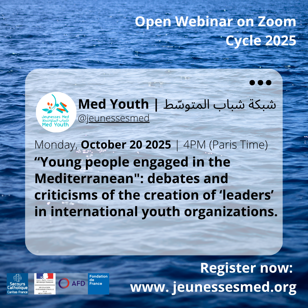 العنوان: "الشباب الملتزمون في منطقة البحر الأبيض المتوسط": نقاشات وانتقادات حول إنشاء "قادة" في المنظمات الشبابية الدولية. "